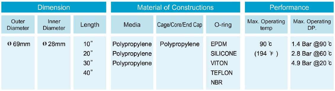 ◆ 100% polypropylene material gives the filter cartridge excellent chemical compatibility for filtration of various liquids.