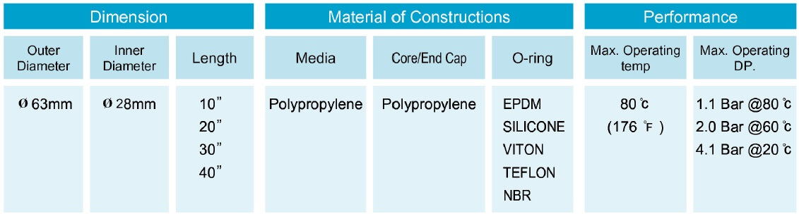 Melt Blown PPP Filter Cartridges is CHING-YI’s standard series of melt blown filter cartridges.