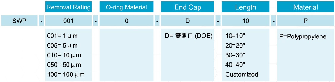 ◆ String Wound SWP Filter Cartridges are all double open-end (DOE).
