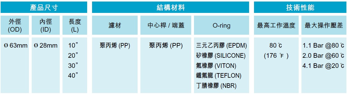 ◆ 三層深層式PPP熔噴過濾結構提供高納污量,延長使用壽命